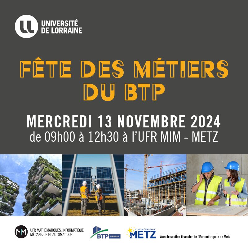 cette manifestation, co-organisée par l’université de Lorraine et la Fédération du BTP-Moselle s’adresse à vous.