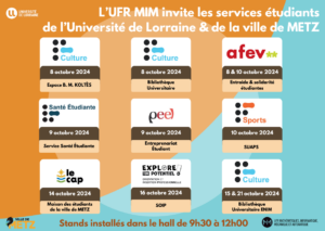 🌟 Découverte des services étudiants à l’UFR MIM – Du 8 au 21 octobre – hall face aux amphis 📅