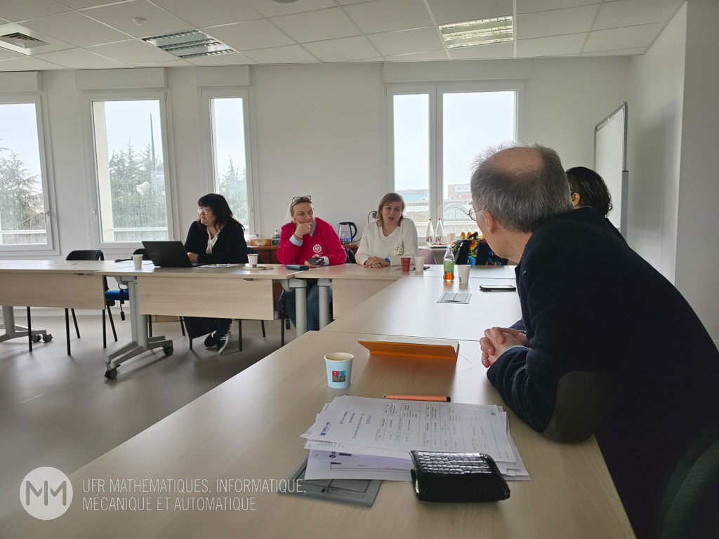 La délégation a échangé avec les équipes de l’UFR MIM sur les formations, les outils pédagogiques et les dispositifs d’accompagnement des étudiants. La délégation était composée de :