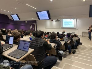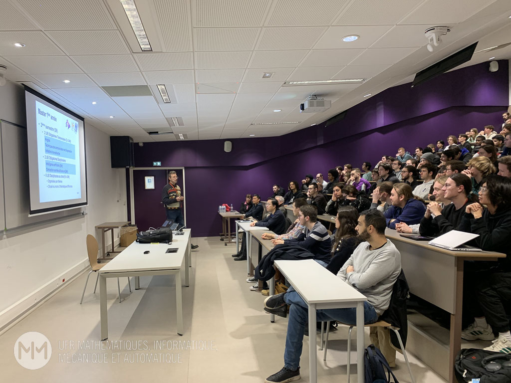À partir de 13 h 30, une présentation des différents masters Informatique proposés à l’UFR MIM a été assurée en présence des responsables des masters de Metz et d’étudiants de M2 issus des différents parcours. Cette présentation a permis aux étudiants de L3 et M1 de découvrir plus en détail les contenus de formation, les débouchés et les spécificités de chaque master.